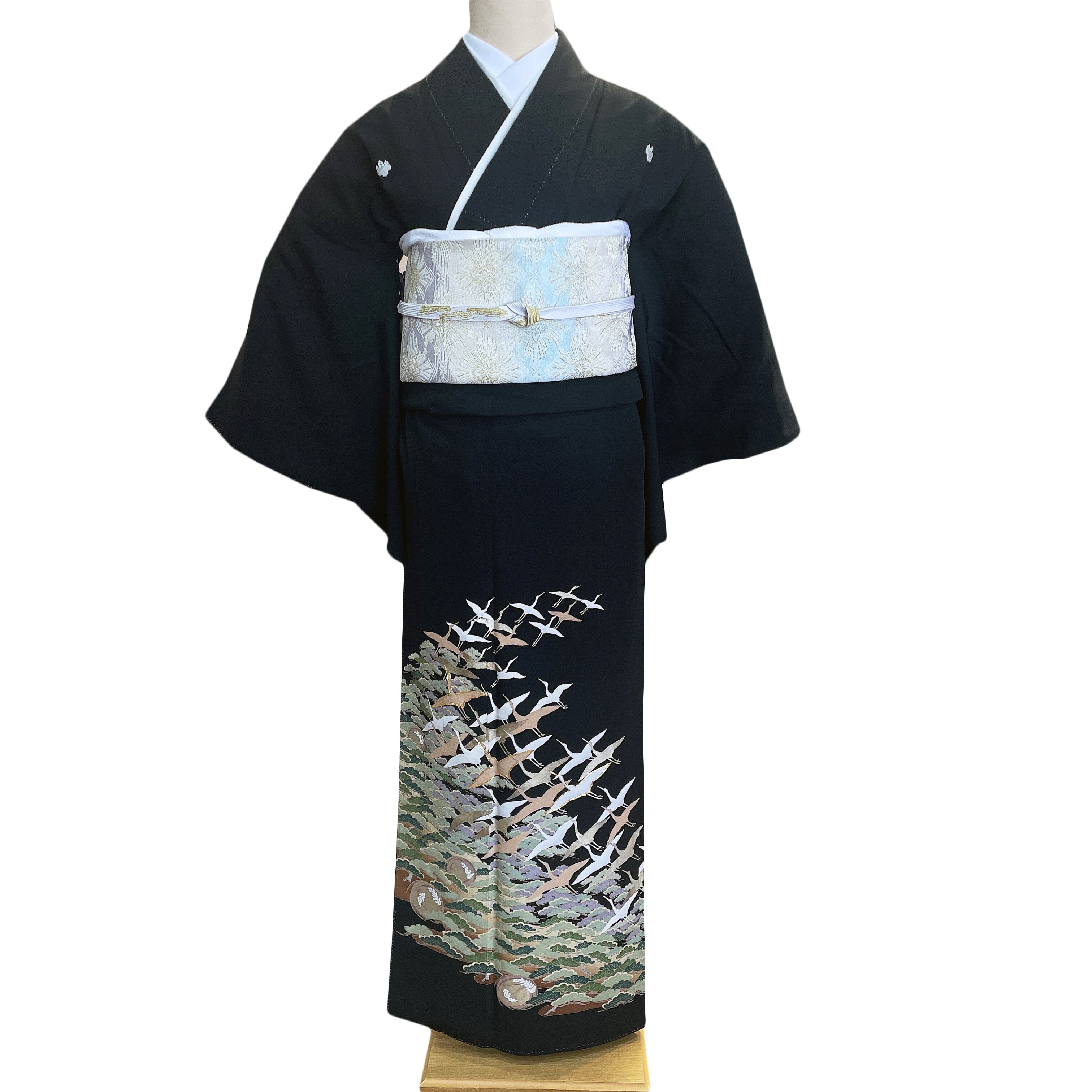 【kuro7】黒留袖レンタル■正絹■松に飛鶴文■
